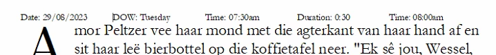 I'm writing a novel using FrameMaker. To keep track of events, I would like to add the Date, Time and Duration for each event in the novel, akin to this:
