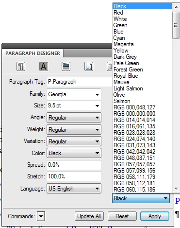 I have a large number of color definitions defined in the template. Please see the attached image. They have names like: RGB 000.048.127 etc.