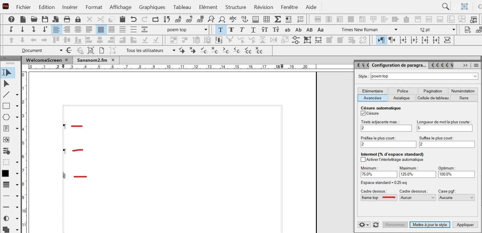I need to separate all pages of my document because I want to add one poem on each page. The advantage for me to separate pages is : if I want to modify the poem on page 1, the poem on page 2 does not move.