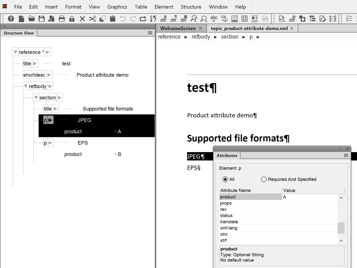 Here's a sample topic in which I've defined a product attribute for two paragraphs: