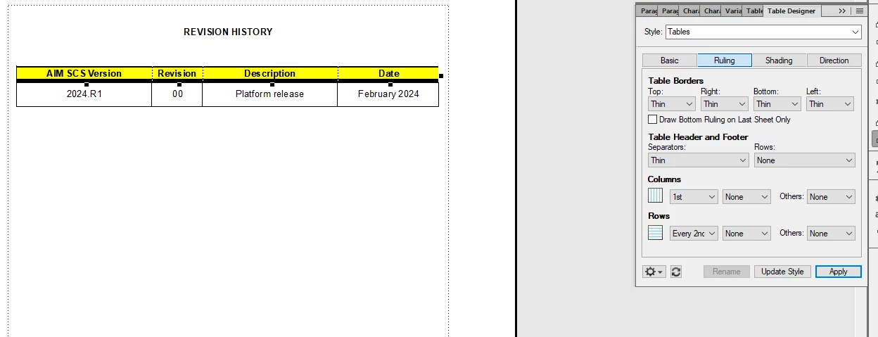 There is a custom style table that was created by a colleague who’s no longer with the company. I’ve removed the custom style table formatting; however, when I attempt to add the new color to the table header row, the top and bottom portions of that header row will not fill in with the color I’ve selected. I used Pargraph Designer > Advanced tab that gave me the new color blue. I attempted to use Table Desinger > Shading tab to no avail. Does anyone know how I’m able to get the top and bottom portions to fill in with the blue color I selected? See the images below for clarity.