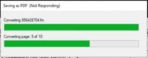 For about 2 weeks now, we have been experiencing an error when writing books to PDF (Save as PDF). Previously it worked without any problems for months. The process now suddenly hangs at different times.