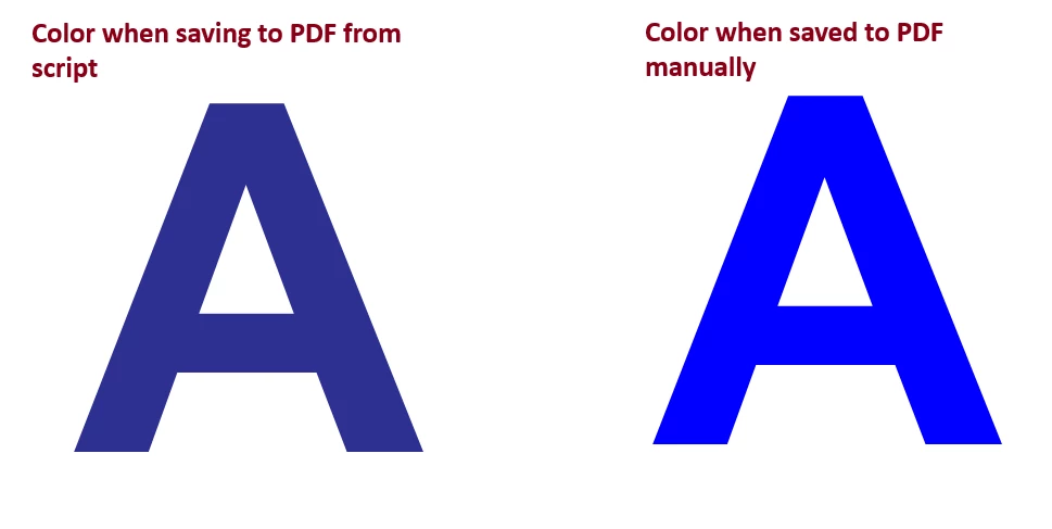 I have manually checked and the ConvertCMYKtoRGB is definitely the setting that affects the color issue. Manually disabling this setting in the interface and saving to PDF from the interface produces the same colors in the PDF as below script.