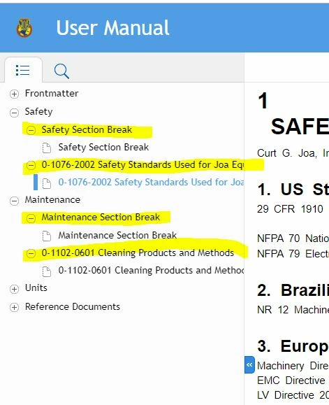Let's have a look at the actual FM doc for that "Safety Standards Used for.." doc - what's in there that's triggering the heading...