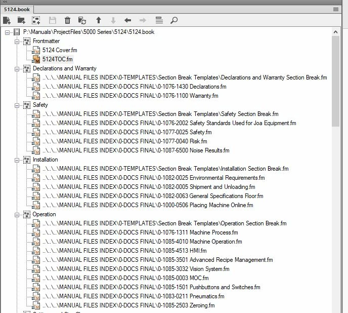 Here is what my Frame book looks like. The HTML output seems to be making a navigation heading for each group I have in the Frame book because the "Frontmatter" heading is NOT in my TOC, but it is a group in my FrameMaker book as shown below.