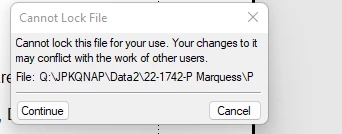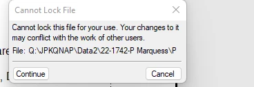 I get the same cant lock dialogue. This the becomes and endless loop of dialog boxes. I cant save changes.