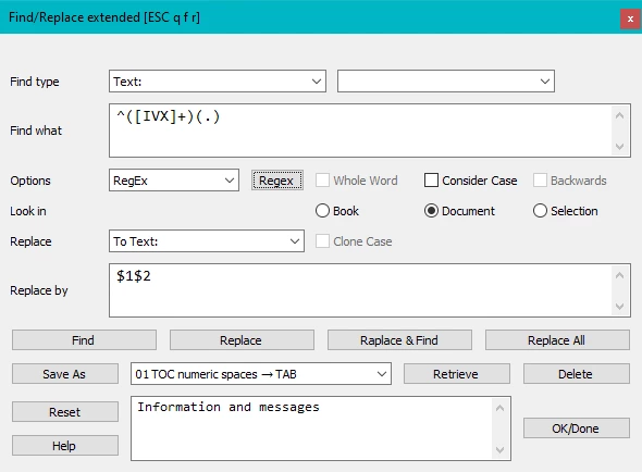 Therefore it is (for all but simple cases) necessary to know what is implemented (in FM. BTW ExtendScript Scripting guide and FDK reference / programmer’s guide do not know “Regular Expression” nor “regex”).