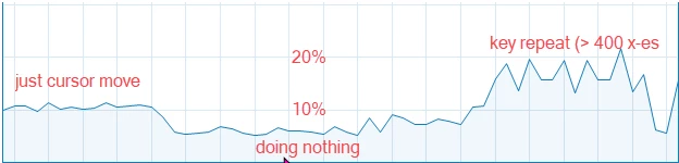 I am disappointed from the speed of the cursor to move the insertion point. This is far less than the speed I get when I repeat characters...