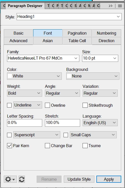 I have used the reference page to adjust the Heading1 background bar, which is the selected setting in Frame Above Pfg in the advanced tab of this paragraph design element. It has not solved the problem. I have a ticket with Adobe, but have not yet had success in troubleshooting this issue. If anyone in the community has any ideas, I am very open to suggestions. Thank you in advance.