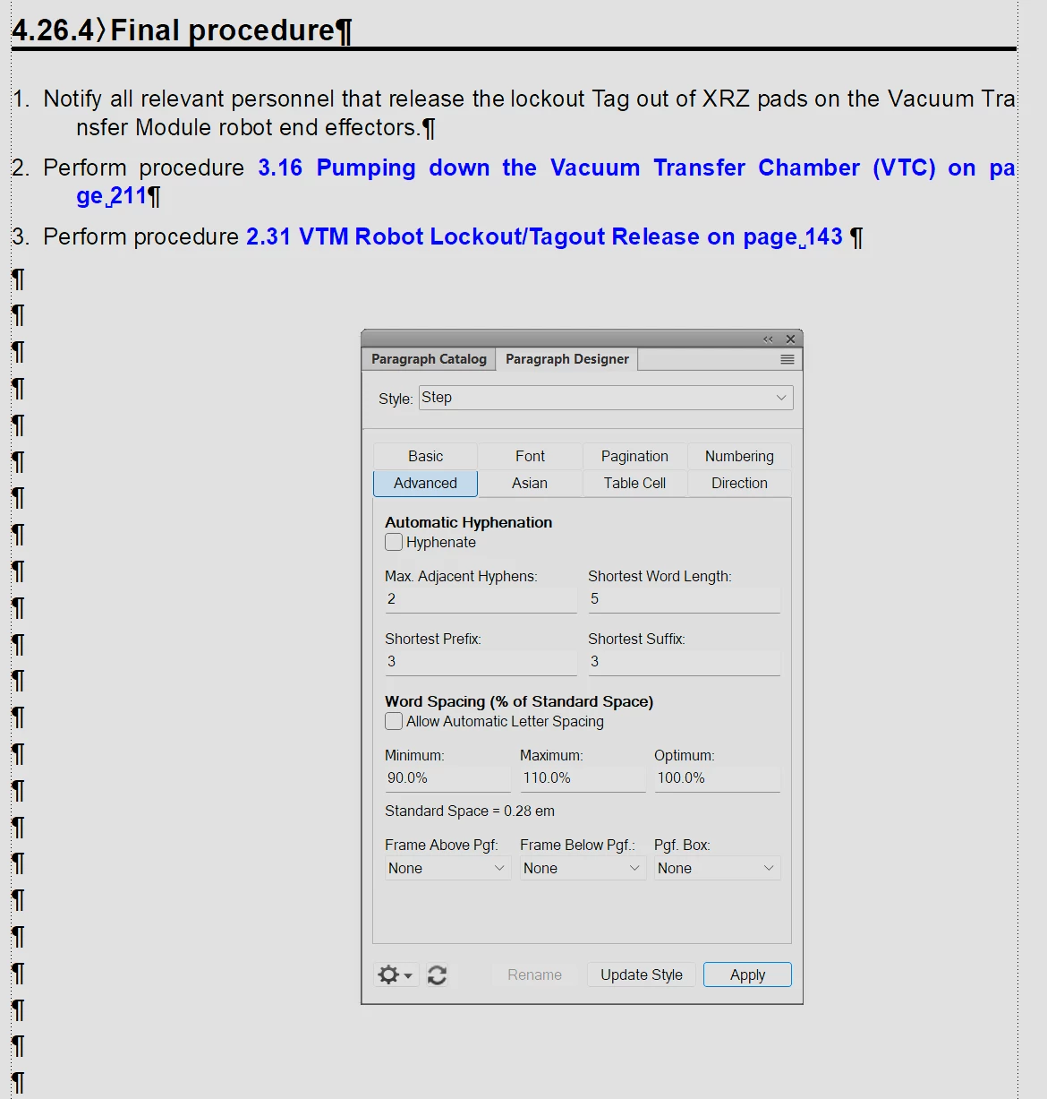 Hello. I have a document in which FM is not wrapping words at the end of lines: