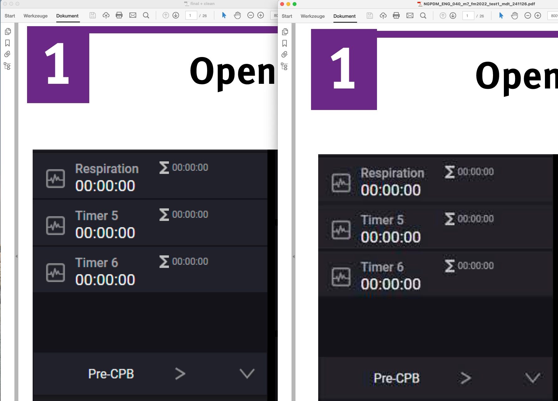 This is especially visible when the file contains screenshots, which usually have evenly colored backgrounds with text on them. The FM2022 PDF output clearly has JPG compression artifacts, while the FM2019 output is clean. This is visible in the attached screenshot, which shows the same file as FM2019 PDF (on the left) and the FM2022 PDF (on the right).