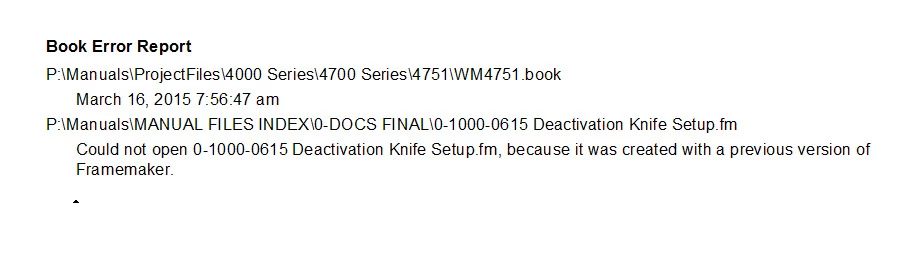 FrameMaker 12 book error "Couldn't open document because it was created with a previous version of FrameMaker"