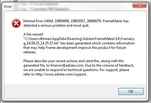 FrameMaker 2017 Constantly Crashing