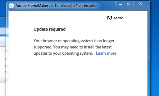 Trying to install Framemaker 2019 on Windows 7 Professional 64 bit OS.