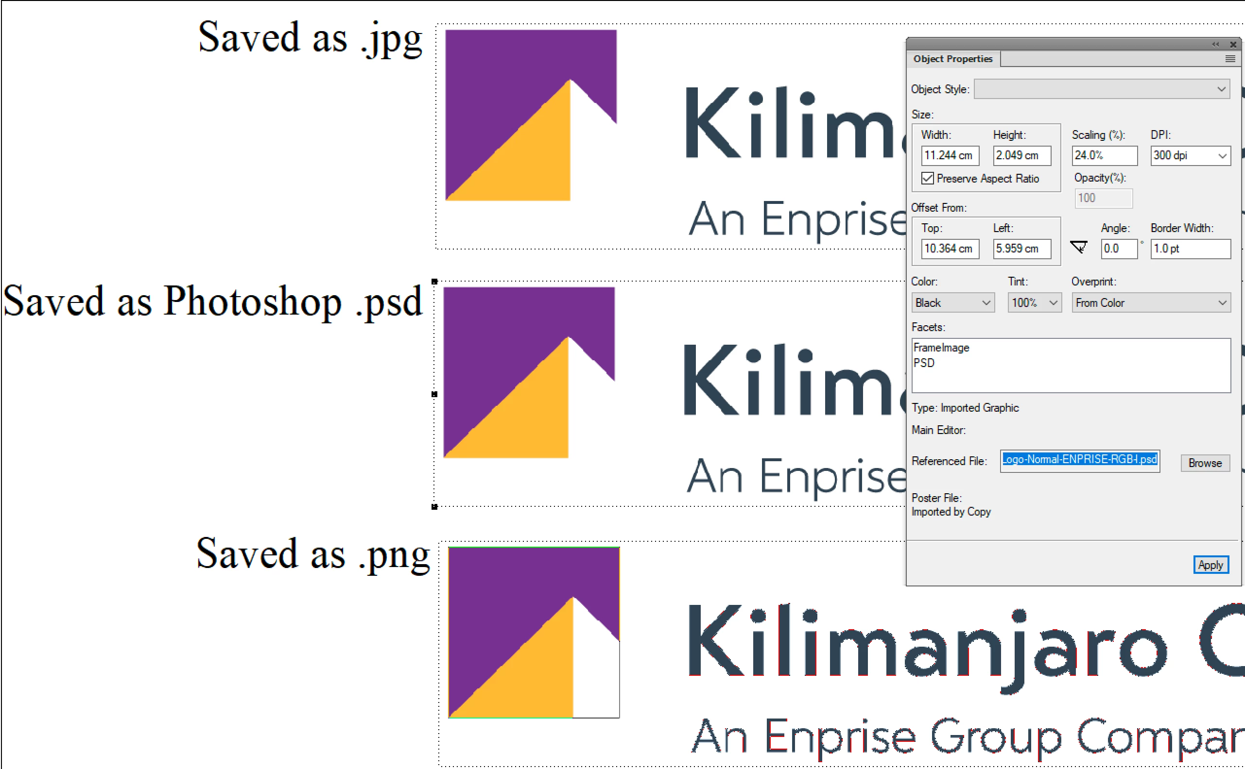 I can replicate this in both FrameMaker 2017 and in 2019 – it is exactly as you described in both applications. I used the Kilimanjaro logo for testing purposes.