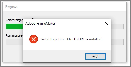 Framemaker 2019 HTML5 publishing error (Failed to publish. Check if JRE is installed.)