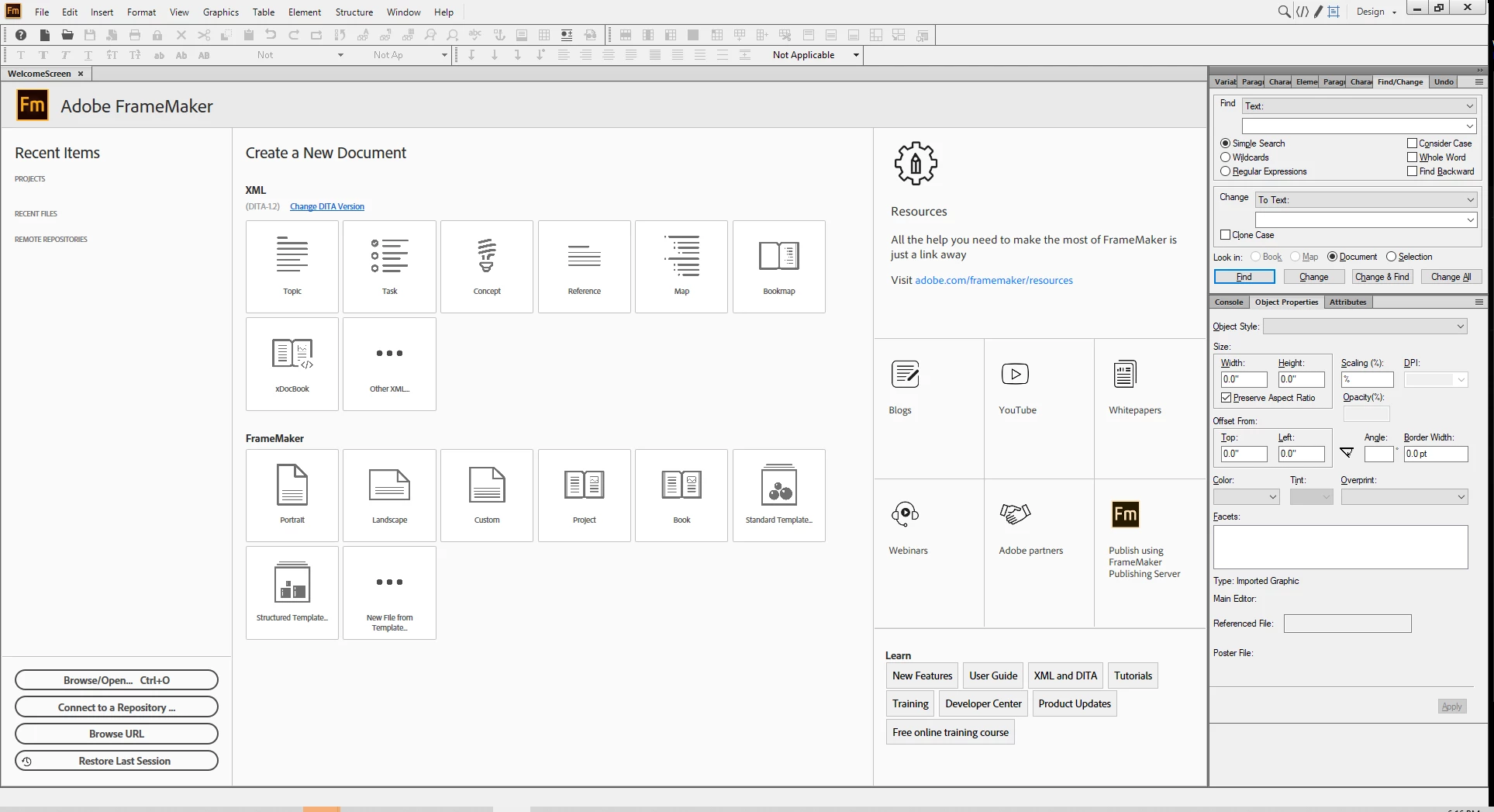 FrameMaker 2019 Resources Splash Page incorrect