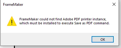 Follow the steps in this link: Missing Distiller error on saving a document as PDF in FrameMaker (adobe.com)