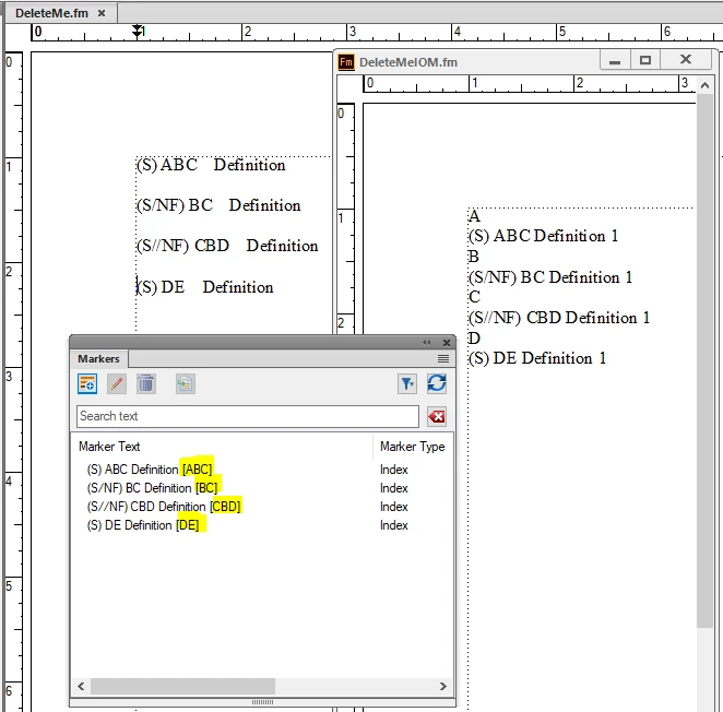 How can I generate an IOM list of Acronyms with classification markings in front of them? See below example: