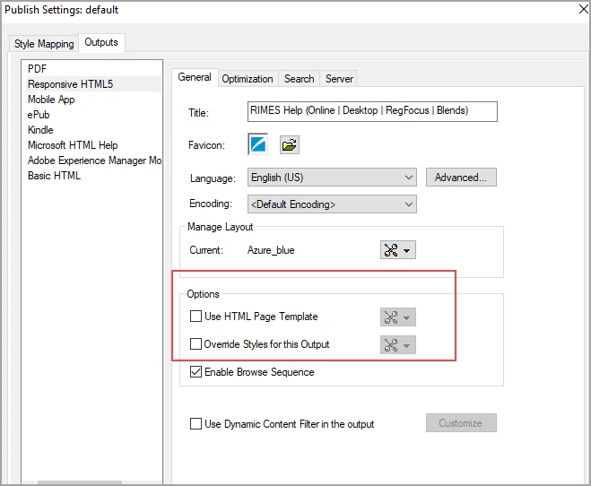 I see in the publish settings things like Options - use html page template and override styles;