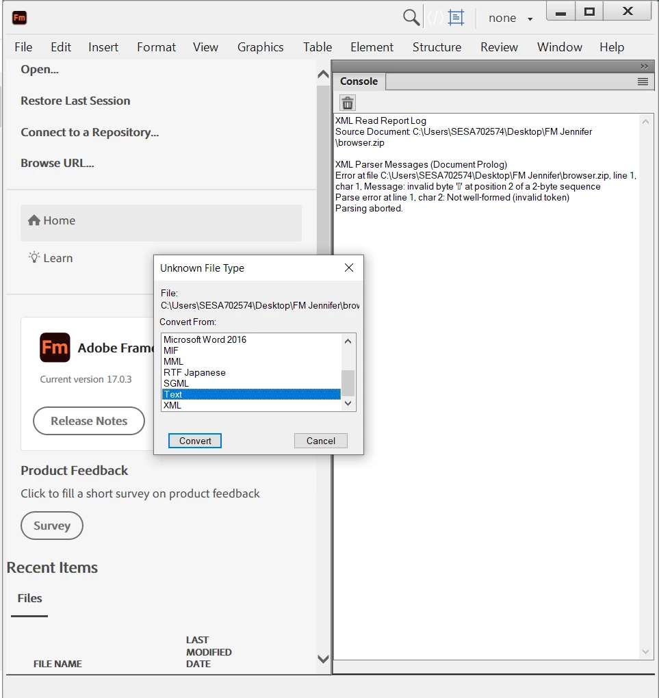 If i drag and drop the Zip file, I am receiving error like the second image of asking to choose the option..