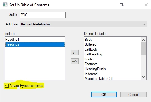 FrameMaker TOC and Hyperlinks