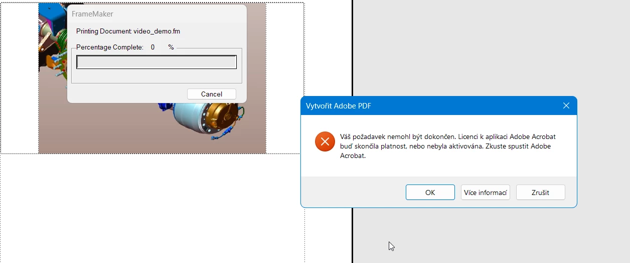 When I do a Save as PDF or Publishing procerude, my Framemaker always freeze like this: