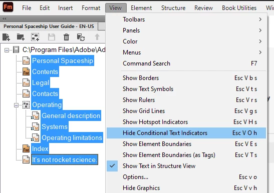 Hi, this message just says that the settings to show or hide conditions in the single files differ from those of the first file of the book.