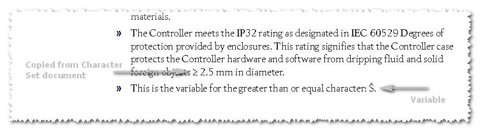 According to the Character_Sets.pdf FrameMaker Online reference, the greaterequal symbol is Ctrl+q 3, but when I format it as Symbol, FrameMaker displays a box (which looks to me to be a non-printing character).