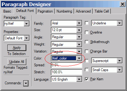 3. Create a new paratag, e.g. myXref, for text to be entered using the new colour.