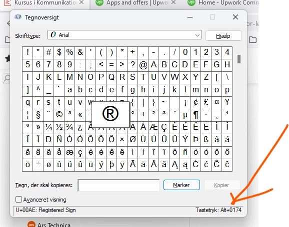 How can I write a symbol like (encircled 'R' at the top edge of A) in the screenshot below in FM? Please guide.