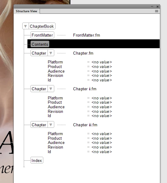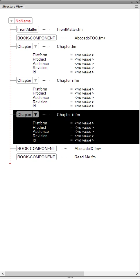 I am taking my first steps into working with structured documents. Right now I am working with the structured "Book" which comes with FrameMaker. I am uncertain however, as to how I add/change the top level "NoName" and make the entire book structure valid?