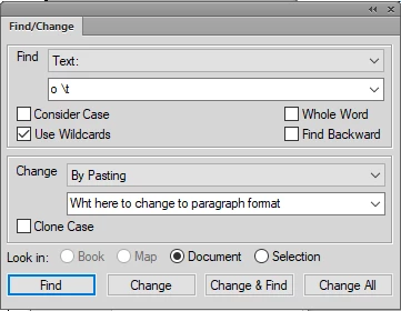 How do I change the format off all paragraphs in a document with specific characters without effecting the rest of the paragraphs above or below the targeted paragraphs? Frame 11.