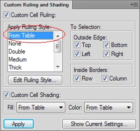 I am using FM 11 and have a Acronym list in table format. The heading row should have a thin line on the outside and inside cells. My line between cells doesn't show. My repeat heading rows done have the bottom line (they do have the top and side lines. When I try to correct with the Table Designer or Custom rulling, it doesn't take the change.