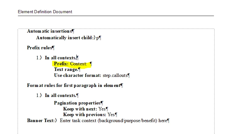 I am using Structured FrameMaker Version 17.0.1.305. In a task topic, the "context" tag is required, if I want to add text above steps. The "context" tag automatically displays the word "CONTEXT:" in its own separate line, before the text. I would like to remove the word "CONTEXT:"