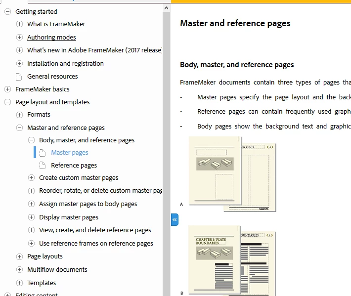 The table of contents is produced in this example from the title elements of the DITA Source content (topics in a ditamap).