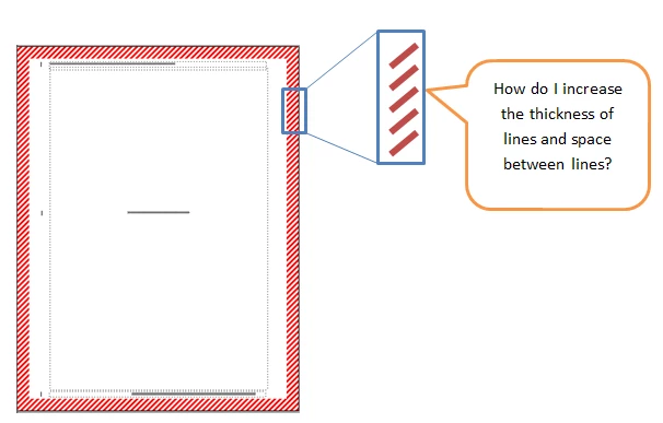 I am working in FM11. I need to have a caution border around pages from one chapter in my book. I took the hash mark pattern from set pen pattern and made a rectangle on a master page. The thickness of the rectangle is fine and I see how to change that. I would like to make the pattern itself thicker meaning the diagonal marks have more white space before and after the color hash mark.