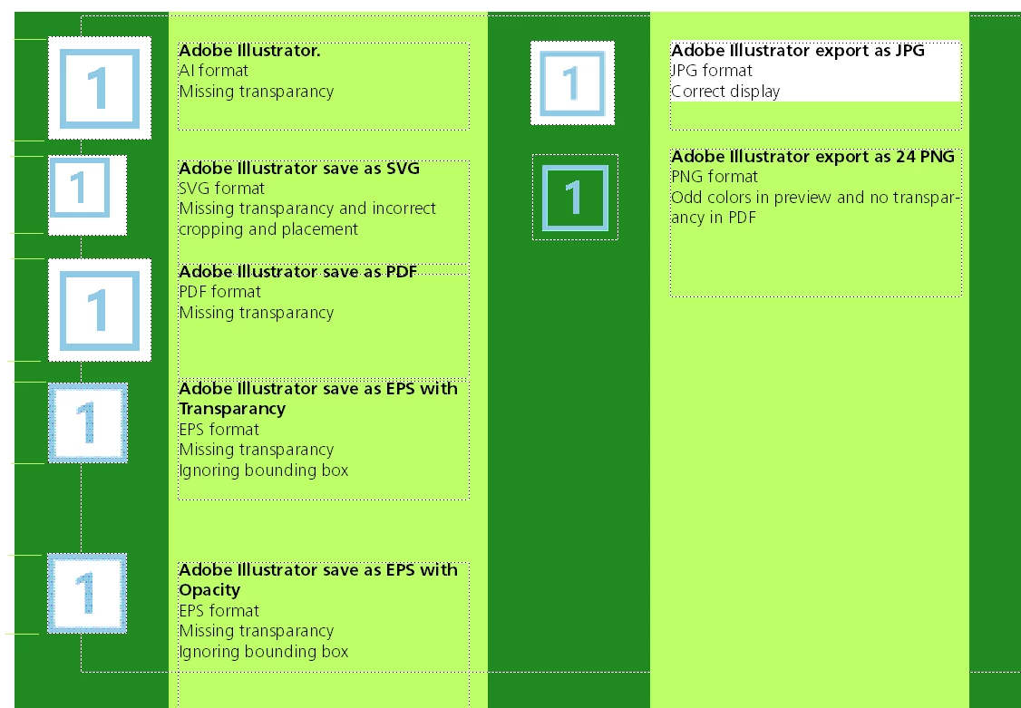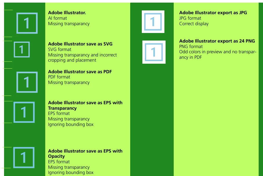The file formats and standards I have used in this test are the most common file formats in the graphics industry and I would expect both preview and rendering to work. In this test it only jpg which truly works in both preview and pdf.