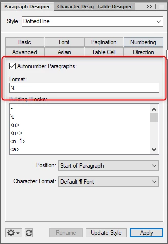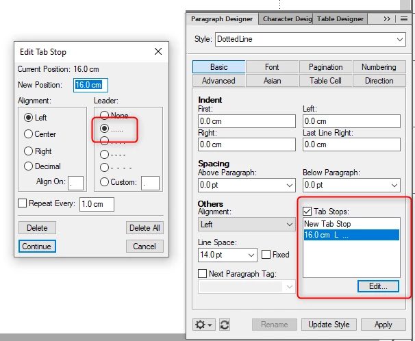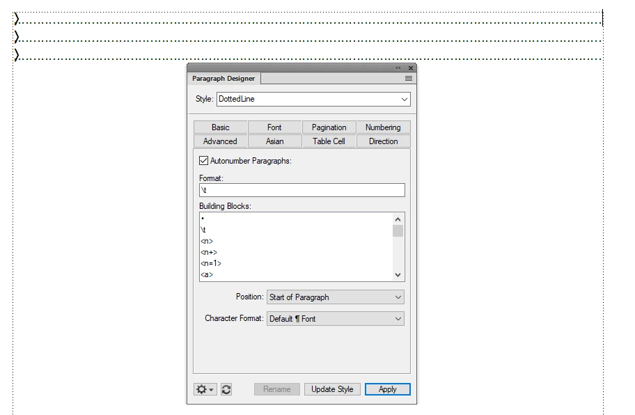 On an empty line in Frame Maker, I would like to create a dotted line on