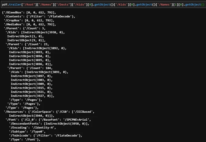 I have been trying few python libraries to read data from a PDF made using FrameMaker. I am able to fetch hyperlinks that point to external public web pages. But I am not able to find the hyperlink URI for cross reference links. For example,