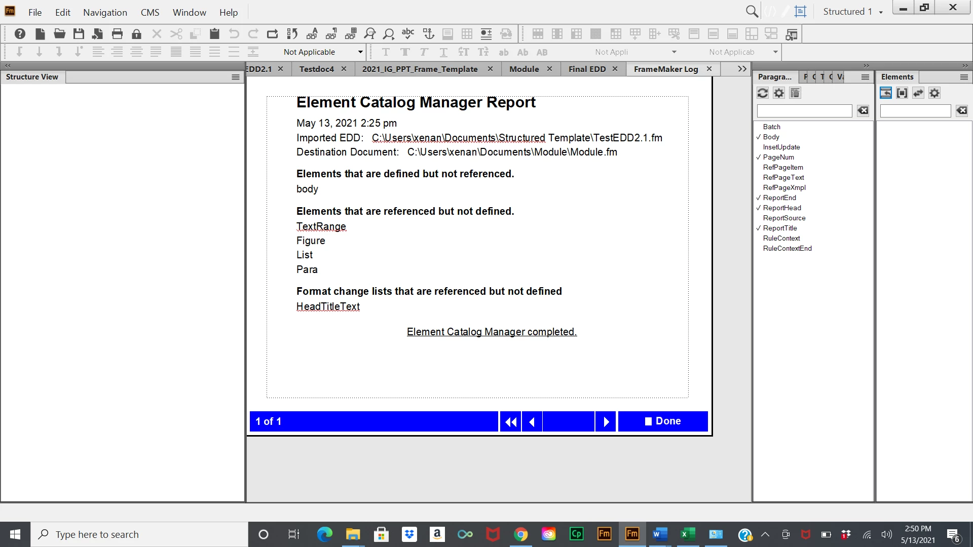 I am trying to figure how to resolve the error "Format change lists that are referenced but not defined." Can anyone provide assistance. The error is referencing "HeadTitleText" in my EDD and is appearing in my Element Catalog Manager report after importing the Element Definitions into a template.
