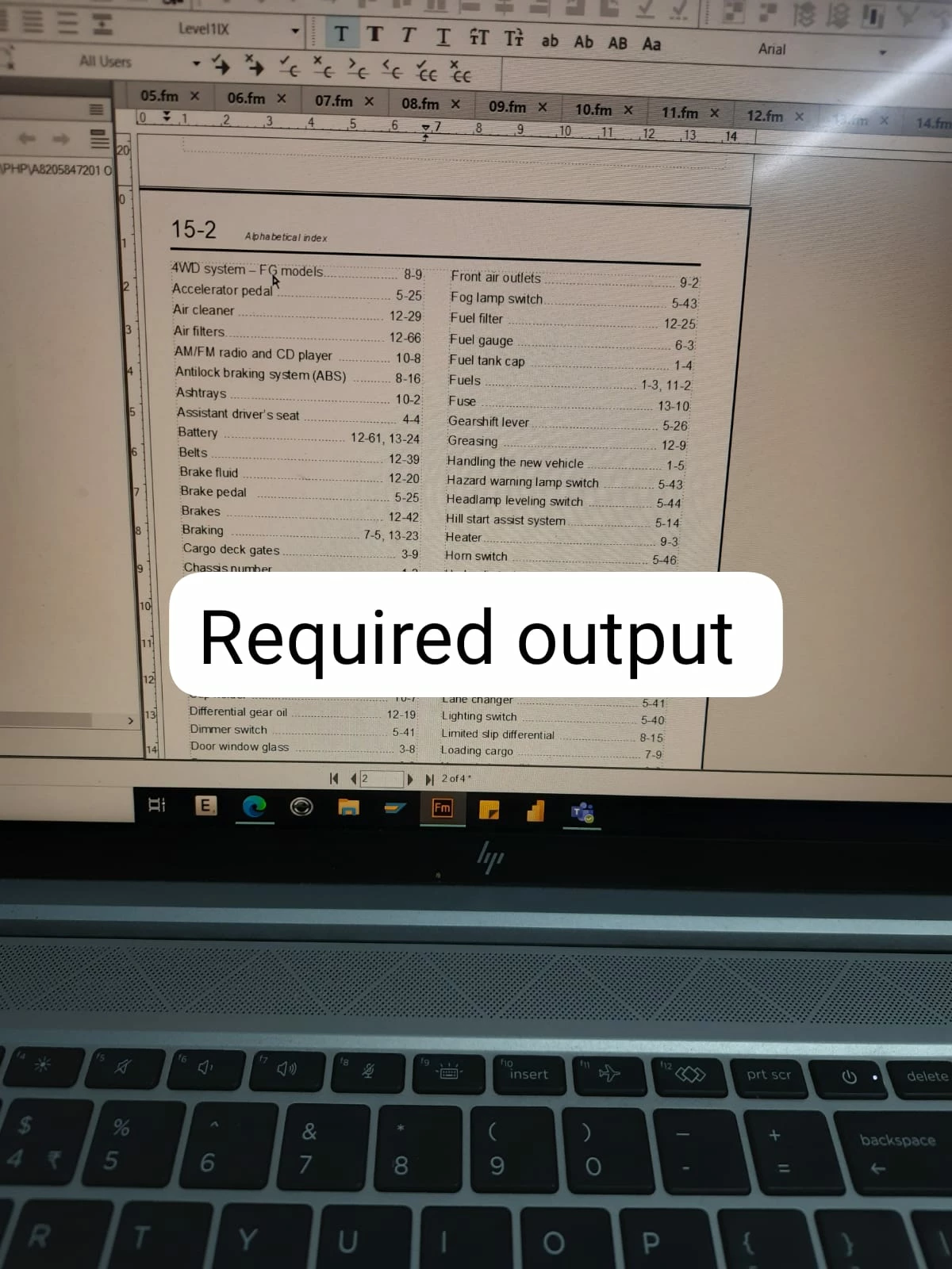 Here i m wiriting a long story regards to create Albhabetcial index, i used Elements & paragraphs(alphabtical index). With this i am able to get all the titles and subtitles as the output,
