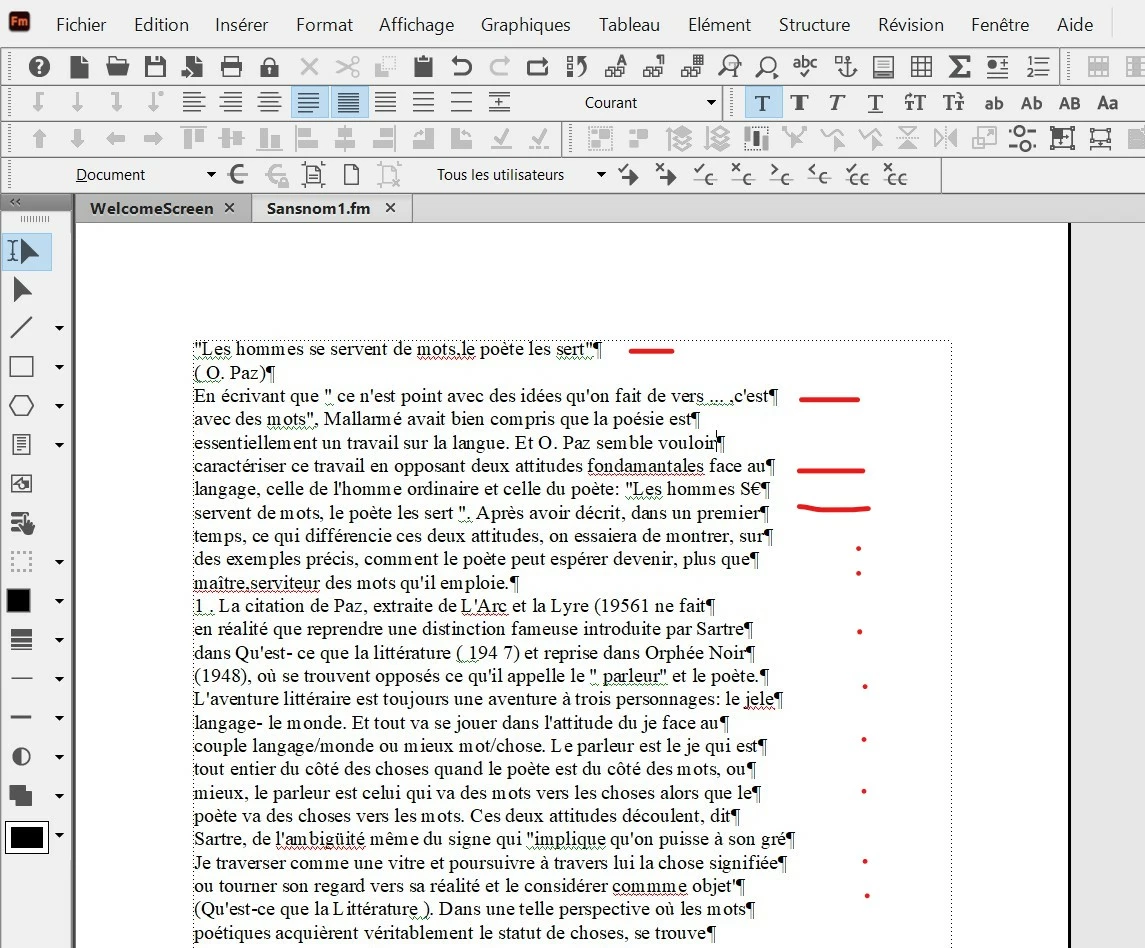 I have copied/pasted text from Word to Frame Maker, and selected "Justify" button in Frame Maker, but I have always some space at the right (see red lines) :