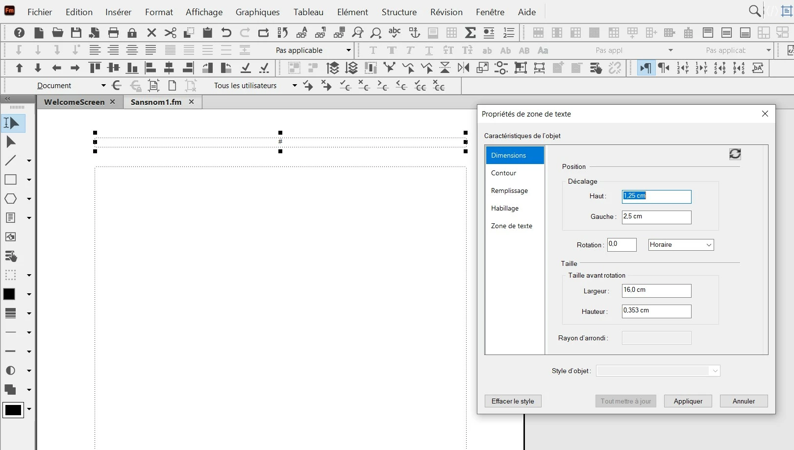 You said: Is it possible to use a tag to do it ? which makes me think you are asking how to create/assign an object style. Again, we use this feature when we want to control multiple frames at one time. If that's the goal, continue reading. If you just want to change the one frame you are showing us, use Graphics > Object Properties.