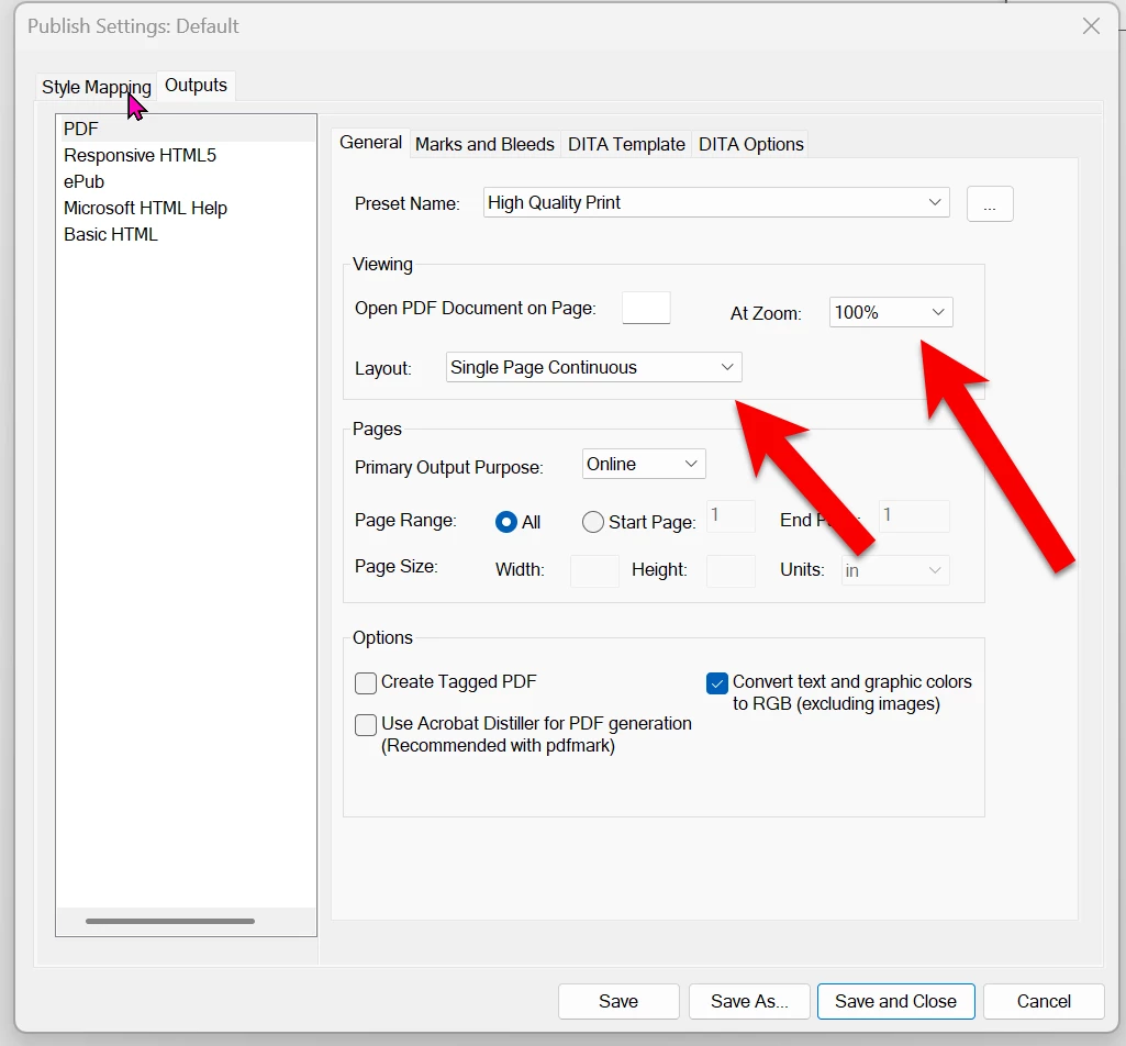 So by opening this PDF the user will have 100% magnification and page scrolling.