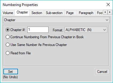 I set up the number for the chapter so it shows the letter A: