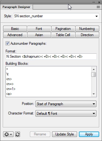 How to set up Appendix in TOC in FM 17?