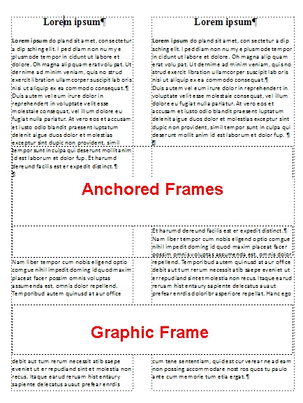 I'm working in a bilingual document with two side-by-side flows and I cannot find the way of adding an anchored frame that runs accross both columns (to host a graphic for example).