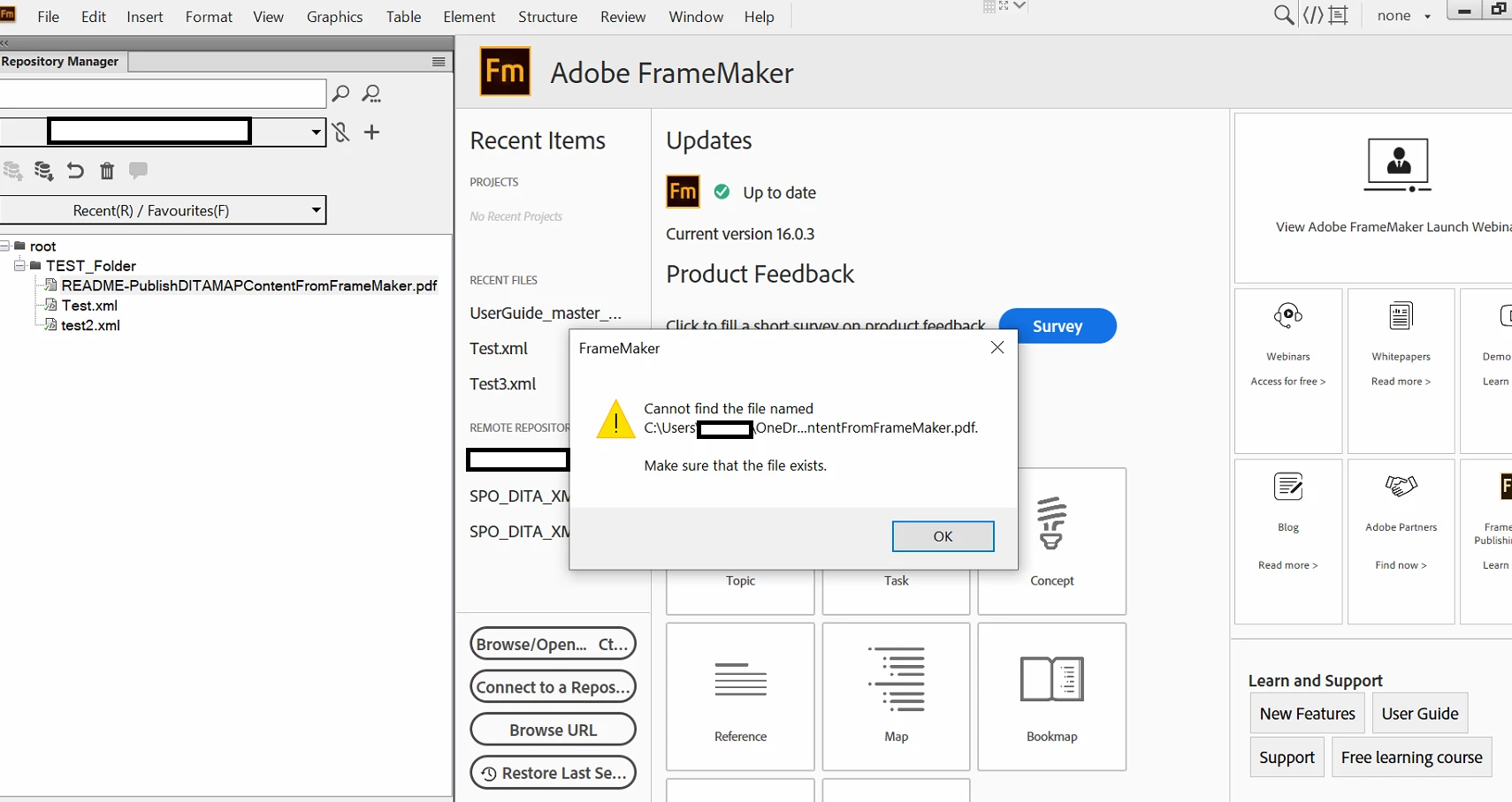 I can't edit files from FrameMaker ( File doesn't exsist )
