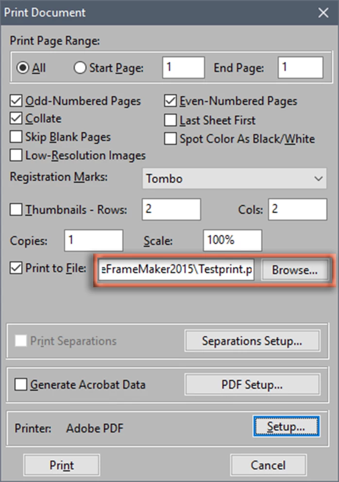 I was unable to print postscript as a PDF file using FrameMaker 2015.